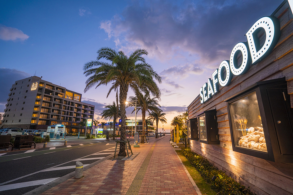 ・在美國村下車後、請自行前往餐廳用餐(從北谷觀光協會前步行約10分鐘)。「Seafood House Pier 54」(〒904-0115 沖縄県中頭郡北谷町美浜54 海業振興センター うみんちゅワーフ内)