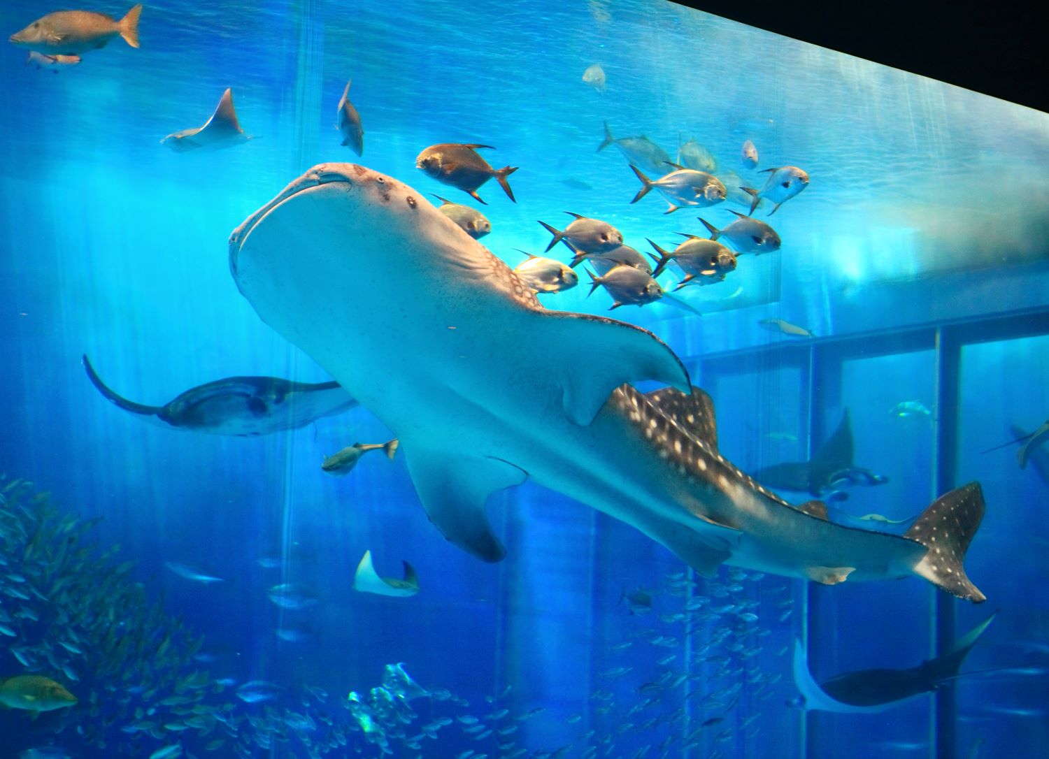 進入水族館前,先跟著名的鯨鯊拍張照留影